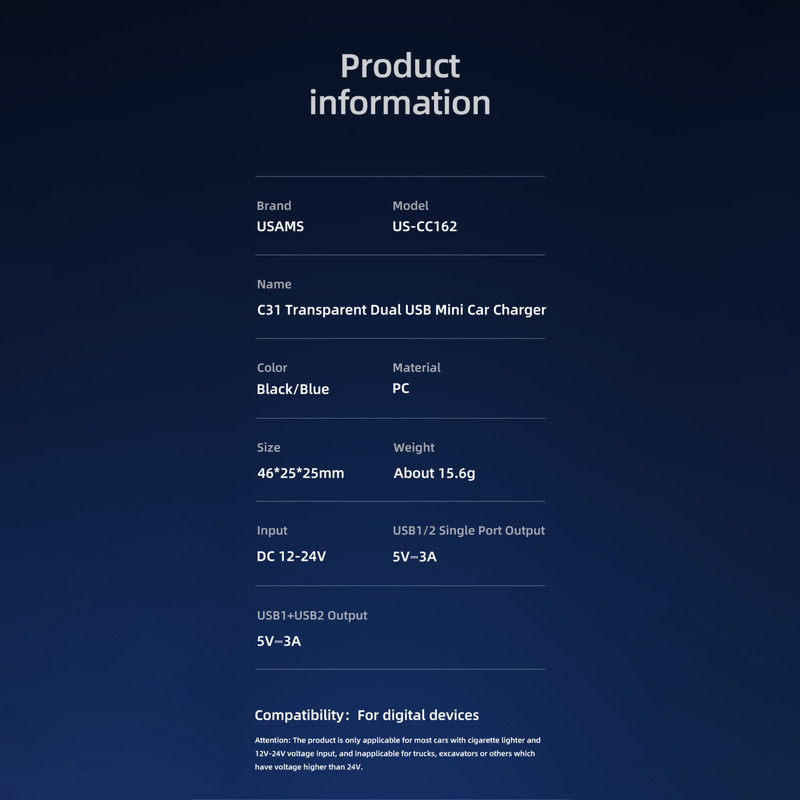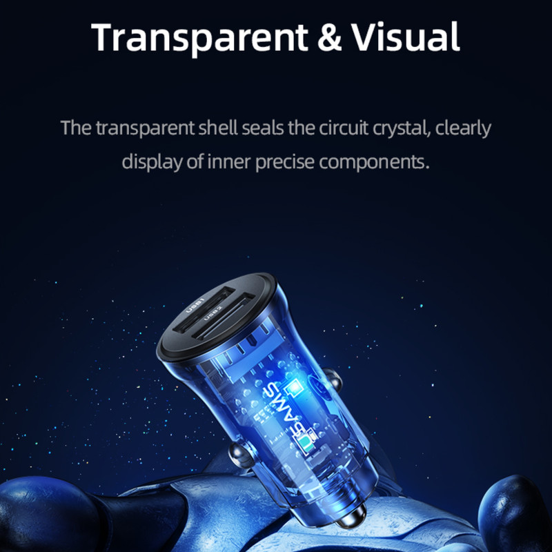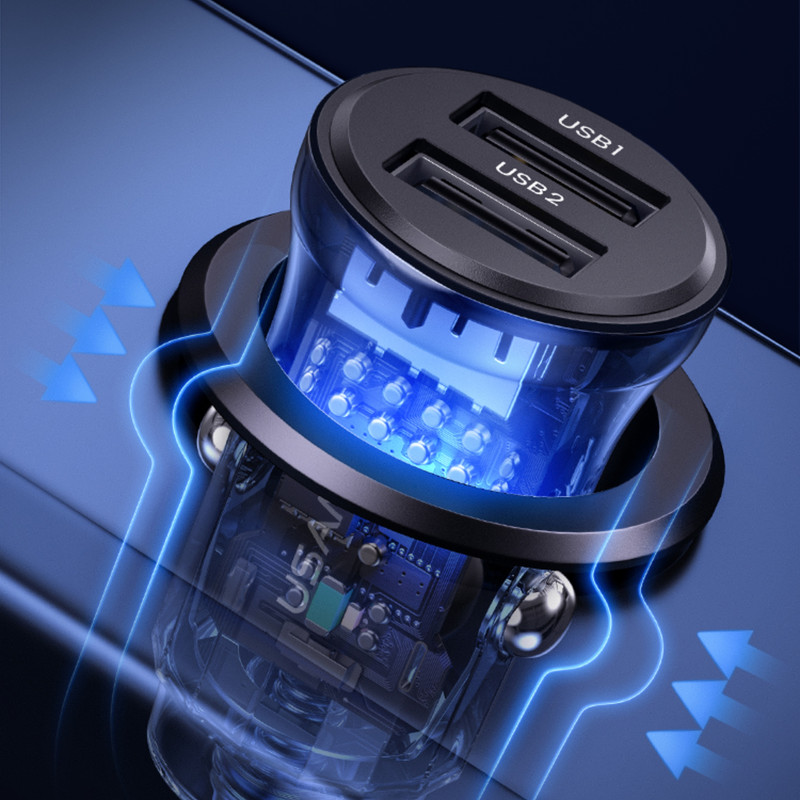 شارژر USAMS US‑CC162 C31 یک نمونه جمعوجور و باکیفیت از لوازم جانبی خودروست. قالب شفاف آن جلوه بصری خاصی به داشبور میبخشد و نور آبی پسزمینه کاربردی و زیباست. دو درگاه USB‑A با جریان خروجی مجموع ۳ آمپر امکان شارژ همزمان دو دستگاه را فراهم میکند — مناسب برای موبایل و تبلت یا مسافران کناری. همچنین تراشه هوشمند داخلی، قابلیت تشخیص جریان مناسب و محافظت در برابر نوسانات را داراست که ایمنی بالایی در شارژدهی ارائه میدهد. ابعاد کوچک و وزن کم، حمل و نصب آسان را تضمین میکند و جنس پلیکربنات نسوز بدنه، دوام بالایی دارد. در استفاده روزانه داخل خودرو، چه در سفرهای شهری و چه در مسیرهای طولانی، این شارژر با ترکیب عملکرد مطمئن و طراحی دلپذیر، گزینهای عالی برای کسانی است که به دنبال کیفیت و زیبایی در وسیله جانبی خودرویی هستند.